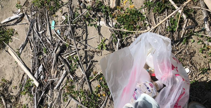 漂流した木と混じってプラスチックだらけ!!!!!多すぎる。どこから手を付けれあいいかと躊躇してしまうほどでしたが、とにかく目に付くゴミからどんどん回収。あっという間に袋がいっぱい。